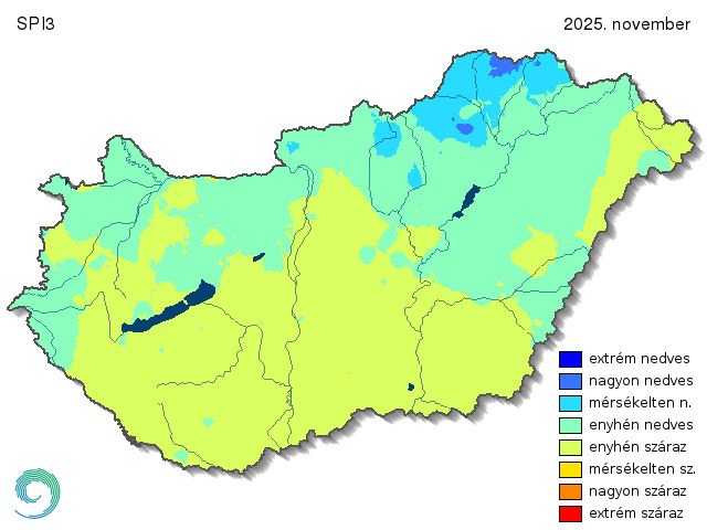 A háromhavi SPI területi eloszlása 2025. novemberében