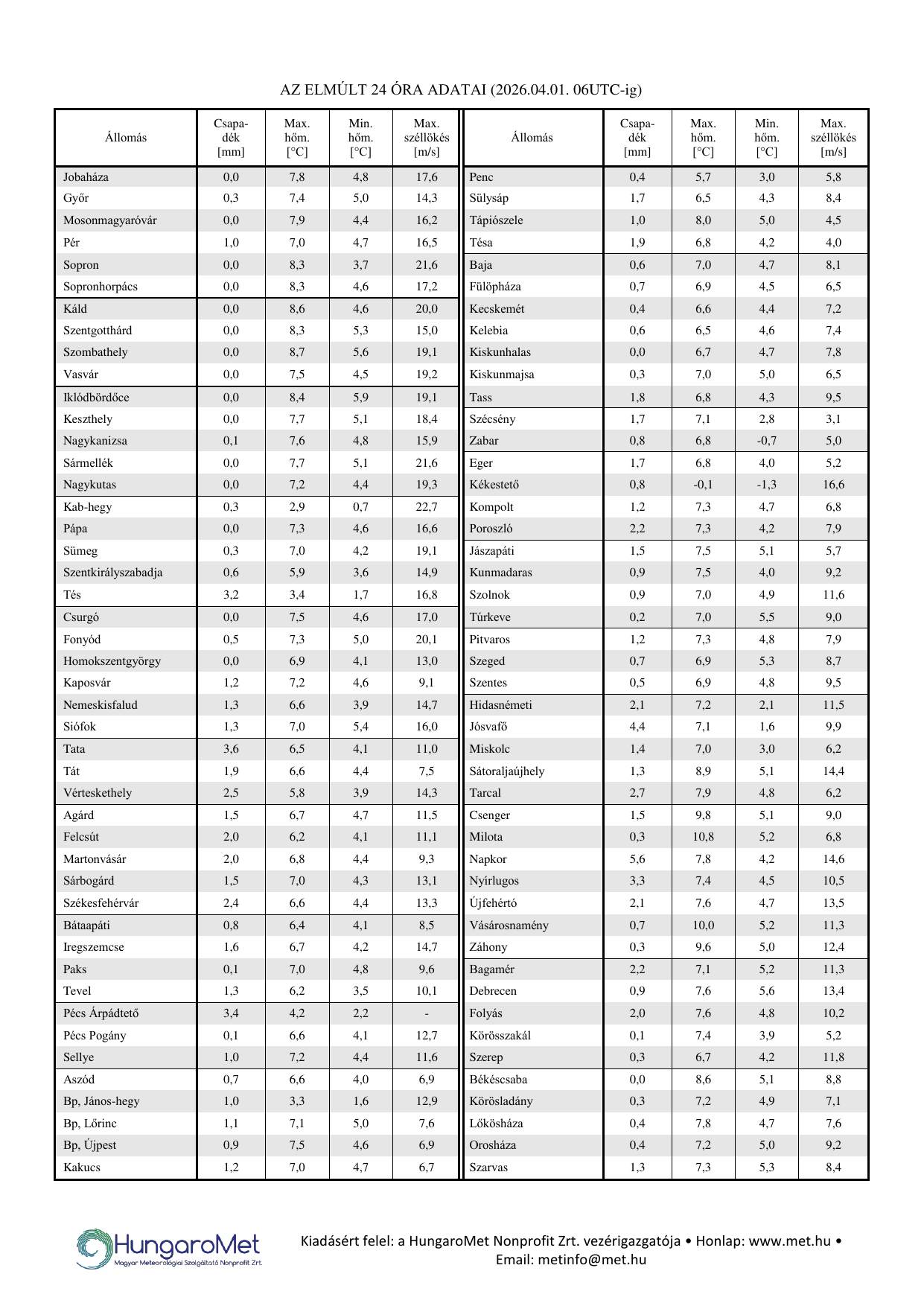 HungaroMet: 2026. április 1. 12:10 (10:10  UTC)  [pd4p]